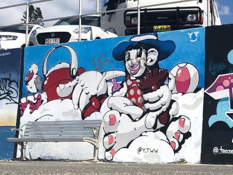 Then late that night after the meeting someone defaced the mural with a roller. Police haven’t yet caught the culprits – but it echoes the behaviours of other thugs in February this year when the wall was defaced with swastikas in an attempt to intimidate Bondi’s Jewish community.